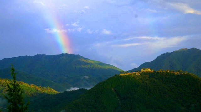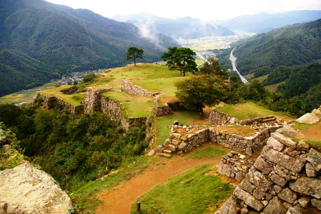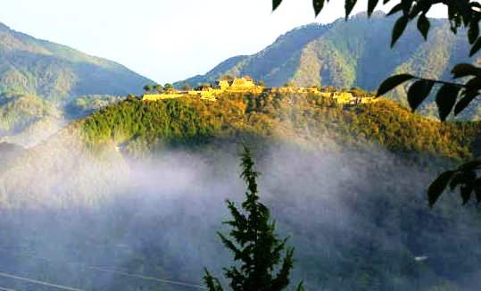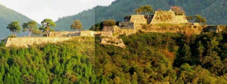 ![]() 標高353.7mの竹田城跡は1441−43年に但馬の守護大名・山名宗全が基礎を築いたとされ、 太田垣氏が5代にわたって城主となったが、信長の命による秀吉の但馬征伐で1580年に落城。 最後の城主・赤松広秀が豪壮な石積みの城郭を整備 |
