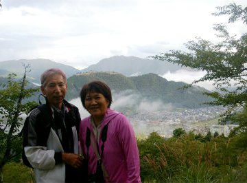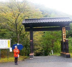![]() 竹田城址の駐車場に着いたら雨が降ってきた。小雨になるまで朝食を取る。 20分程で小降りになったので歩き始める。 |