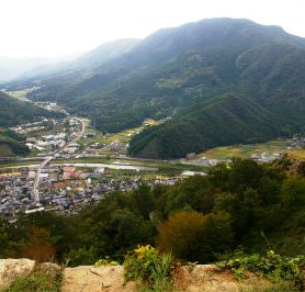 ![]() 円山川を挟んだ立雲峡を後ろに登城です |