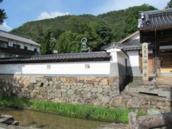 ![]() JR竹田駅の裏に、竹田城主の赤松広秀の墓所が『法樹寺』にありました。塀には鉄砲狭間が? 山頂の城までの道中に安置してあった33観音を、当寺に集めてあった。墓は奥にひっそりと建つ。 1577年中国攻めの司令官である羽柴秀吉に降伏して、秀吉の配下となり、 その後、小牧・長久手の戦いで武功を挙げ、竹田城を与えられ、現在の総石垣の城を完成させた。 |