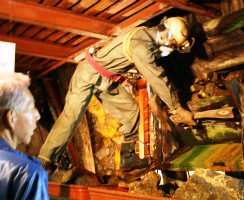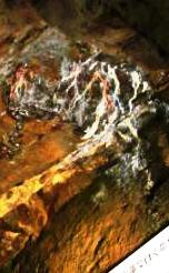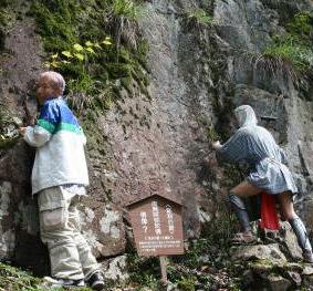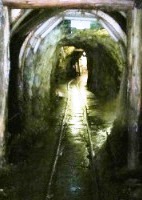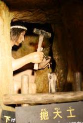 ![]() ![]() 江戸時代の坑道は、作業者ひとりがやっと通れるほどのもので、岩肌にはノミの跡が今も重々しく残っている。 |