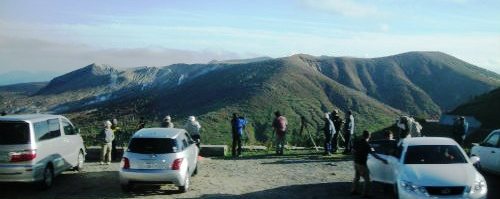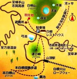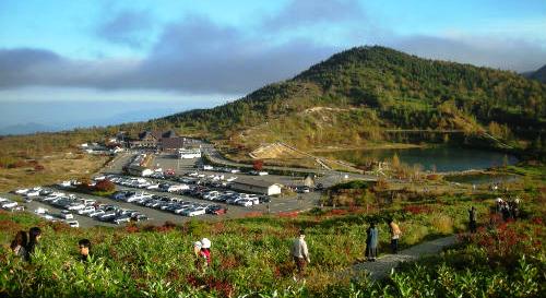 ![]() ![]() 湯釜に行く坂道からの弓池 |