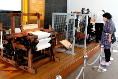 ![]() トヨタの前身「豊田自動織機」が展示してあり、小学生の団体でにぎやかでした。 |