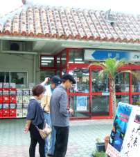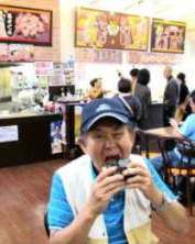 ![]() 左)伊芸SA 許田道駅で割引チケット購入・地図をもらう ソーキソバを昼食に・大きな口でおにぎりを食べてます |