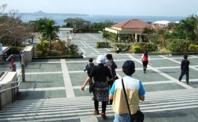 ![]() 美ら海水族館の園内は広く、海のブルーがきれい! |