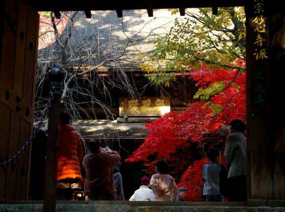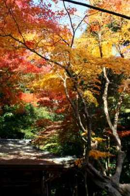 ![]() 無為殿(むいでん?)に紅葉が映える 無為むい=仏門に入る。何もしない。自然に任せる。 |