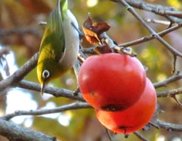 ![]() メジロがおいしそうに柿をついばむ こちらは五平餅と小豆クリームをついばむ |