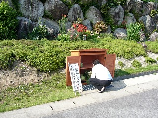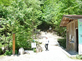 ![]() 田立の滝への入り口には、協力金箱が設置 |