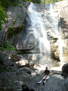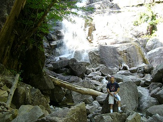 【不動滝】ここからさらに登るには、足回りしっかりしたい マイナスイオン浴びすぎかな、ここから引き返す。 気分爽快! |