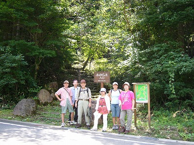 ![]() 6名の精鋭達 (車で滝の上の駐車場間で行けますが、歩くのが最高です) |
