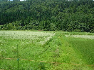 せせらぎ街道の道の駅 テラスで川眺めての弁当は「おいし〜い!」 車中よりソバの花がきれいでした |