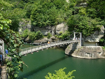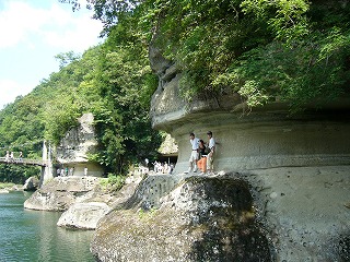 ![]() 【へつりの塔】まさにへつって通る幅です。 自然の寝食作用で造られ、全体は仏様が連立している様です。 |