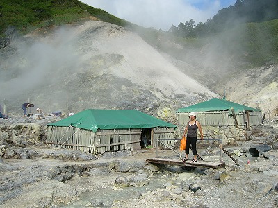 3時20分〜4時10分・(電話0187-58-3000)896Km ゴザに寝転びラジュウム・硫黄泉ガス浴びて療養に来る。 正に東北の温泉。日本は広い「百聞は一見にしかず」 岩盤浴に日本一酸性の強い温泉。一日一回5分まで? |