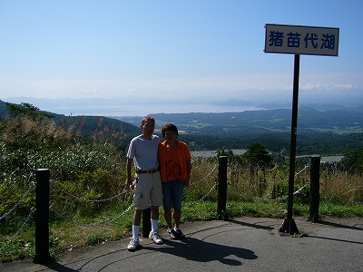 ![]() 猪苗代湖をバックに |