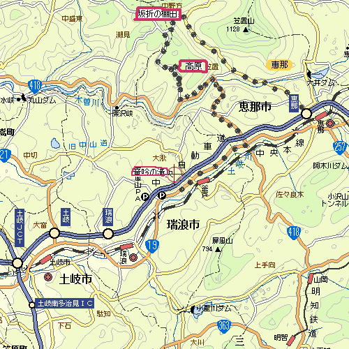台風14号気に掛けながら名古屋>R19>恵那市中野の坂折棚田に行く(70Km2時間)途中R418>飯地高原>坂折