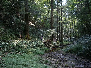 ![]() せせらぎの道に、木漏れ日が雰囲気かもし出す。 |