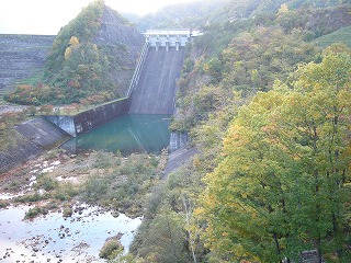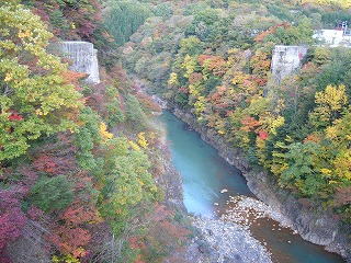 ![]() 牧尾ダムを背中にして、欄干から覗く |
