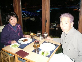 | ●幸せな勘違い● ベーカリーレストラン【マルセイユ】 ピアノ演奏流れて、ガラス越しにきらめく★光の川★ そっと近ずく美しいウエイター! 「二人で、踊りましょうか!」 私の頭の中 「えっ!妻がいるのに、妻となら後で?」 言葉として 「いいです」と答えて気がつく。 「二人で、おとり(撮り)ましょうか!」 その写真→ ・ 嫁さん 「何を言ってるのか、恥かしい!」 わたし 「ドッキリしたわな!いつ踊るか」 ・ ホットしてビーフカレー食べる「はぁー!ピリ唐」 |