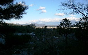 ![]() 天竜寺の庭西を散策して登ると、東に比叡山が望める |