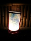 ![]() 月が笹に見え隠れしていて、 竹林のほのかな灯りは「竹取物語」を連想する。 |