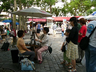 ←←←←←←←←←「聖なる心」の意味を持つ 高さ85Mのロマネスク・ビザンチン様式の寺院 Tさんの奥さん寺院の前で何か感じて、しばし涙ぐむ。 ![]() モンマルトの丘 【テルトル広場】有名な画家がここで絵を描いていたと思うと!・・・・感激! |