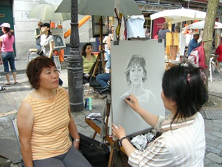 ![]() 似顔絵描きが集まる名物広場。 画家さんは韓国人 |