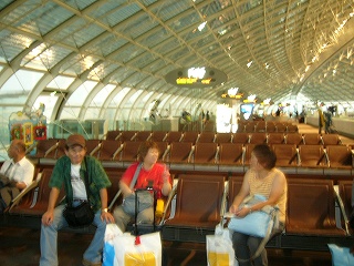 ![]() セントレア空港:胸膨らませての旅たち(過酷な旅が待つ) 出発ロビーではTさんの韓国語の真似で盛り上がる? |