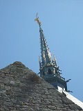 ![]() 右のミカエルが塔の先端に乗っている。 708年に聖オベール司教が大天使ミカエルのお告げ の夢を見たことによって、修道院の設立を決意。 |