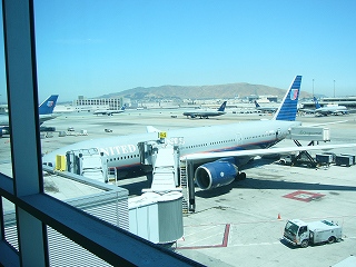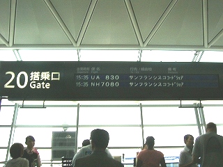 名古屋発pM3:35>UA-830(ユナイテッド・アメリカン)9時間27分>サンフランシスコ現地時間09:02am