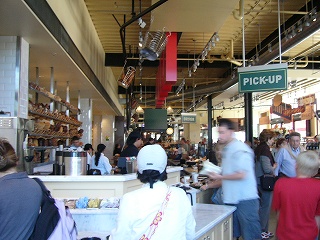 約30軒のレストランやファーストフード店。 何処に入るか迷う アメリカは夏休みなのでファミリーで子供が多い |