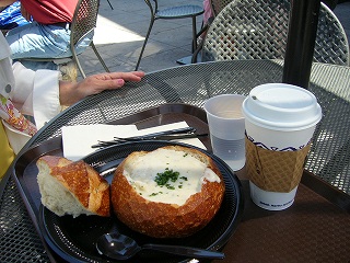 ![]() サワーブレッドをくり抜いてクラムチャウダー このパンがまた美味し〜いんです |