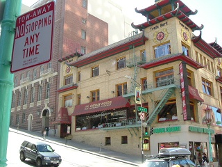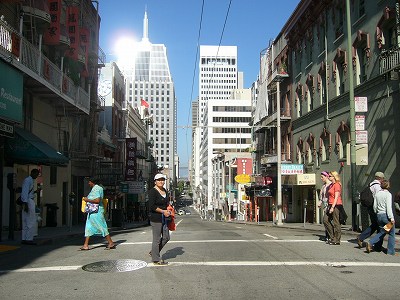 【迷子になる】 ホテルに2:00pm到着して3:00pm早速外出! ホテル>ユニオン・スクエア公園>チャイナタウン>ホテル 南北のケイブルカー路線下ればOKと思っていたら、なんか変! 東西のケイブルカーもあるんだー!ここは何処? 地図片手にビル見上げても分らない。 親切な外人さんに教えてもらう事2度、結局ポリスマンに訪ねて 三ブロックをストレート行き、レフト三ブロックがホテルで落着! 教訓:外出は周り観察してから出かけましょう! |