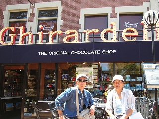 ギラデリ・スクエア(代表的なみやげギラデリ・チョコレート) 赤レンガの工場跡がショップです。少し固めでおいしー! |