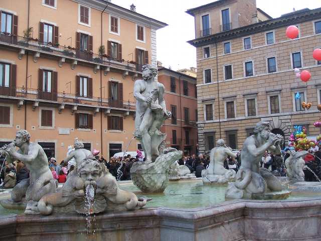 ![]() ナヴォーナ広場にはとても有名な噴水が3つあります。 南から有名な「ムーア人の噴水」「4大河の噴水」「ネプチューンの噴水」です。 masami撮影 |