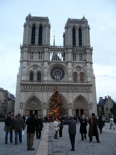 ![]() ノートルダム大聖堂(シテ島)の正面*ツリーがきれいでした!皆さんすぐ・ポーズ! |