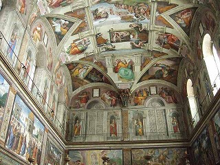 ![]() 四方八方に、著名な画家たちが描いたフレスコ画を観て、ため息がでるが? |