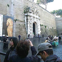 ![]() 40分待ちでした。ヴァチカン美術館の昔の入り口。 一番有名な作品は「システィーナ礼拝堂」の チョー有名な「最後の審判」が見ものです! |