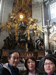 ![]() Tさんご夫婦と、13世紀の聖ペトロの銅像前。 足は巡礼者が触る為、磨り減っている。 |