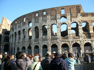 ![]() 修復作業で、かなり補強され復元・・西日に照らされたコロッセオ背に、この後ホテルまで歩いて帰る(1.7Km) これぞ・・イタリアですね!行きたいところのベスト3です。 |