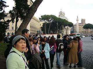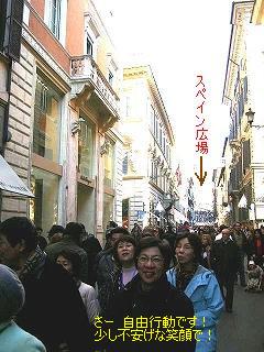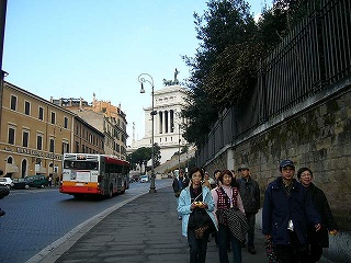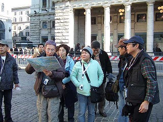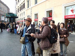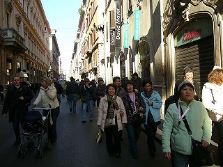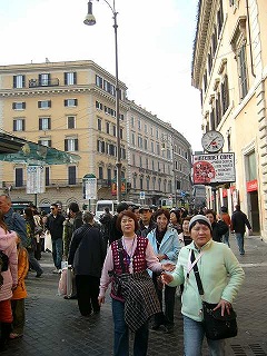 ![]() スペイン広場まで、添乗員坂口さんが案内してくれる。 歩いて10分くらいですが・・皆さんはぐれない様に! |