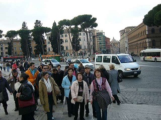 ![]() サン・ピエトロ大聖堂をあとにして 満足!満足!の皆さんです! さーピザ食べに行きますよー!しょぼい花に着いて来て〜 ヴァチカン市国とお別れです |