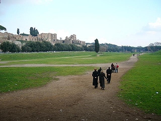 ![]() 『チルコ・マッシモ』を歩く神父さん 左にパラティーノの丘 ベンハーの撮影に使われた場所です! |
