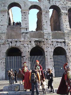 記念撮影に剣闘士とどうぞ? 近づくとお金が要りますので遠くから撮影! |