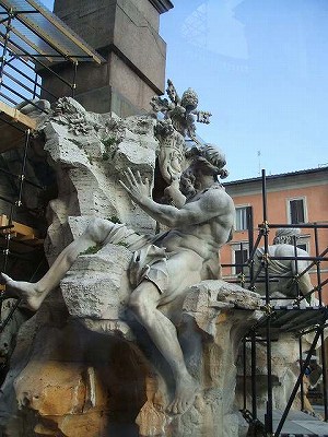 ![]() 「4大河の噴水」の彫像は修復中 しっかり見たかったのに残念でした! |