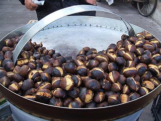 ![]() 焼き栗を買って食べると、やっぱり栗で味は同じ。 でも・・おいーしーい!1袋買って皆で食べたよ! |