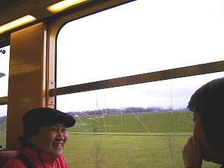 ![]() 最前列の良い席なのに、TVもなく退屈な席なのー!と? 私「ここにTVあるがねー」 Kさん「えっ!知らなんだー」 私「ビール渡したら・・」 Kさん「のど潤し、まいう〜!」 |