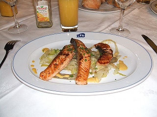 ![]() ディナー会場 カンツォーネを聞きながらディナーです。 すごーくキレイな声!すばらしーい声の3人です! |