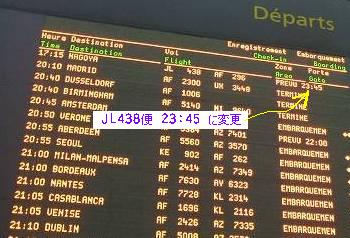 11:05>AZ320(アリタリア航空)>パリ着13:15(4時間待ち)発17:15(JAL438)> 名古屋着 13:20の予定でした。