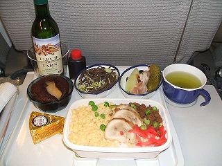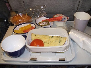 ![]() 機内食(軽食)ですがカロリーはありそうです・・ 全部食べました・・ぺロリ! |