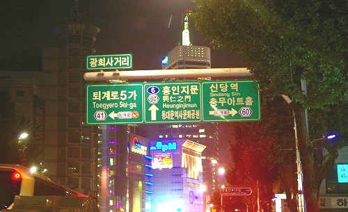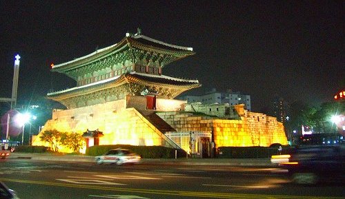 ![]() 東天門の夜景・・・地下鉄の入り口から長い階段を下りる |